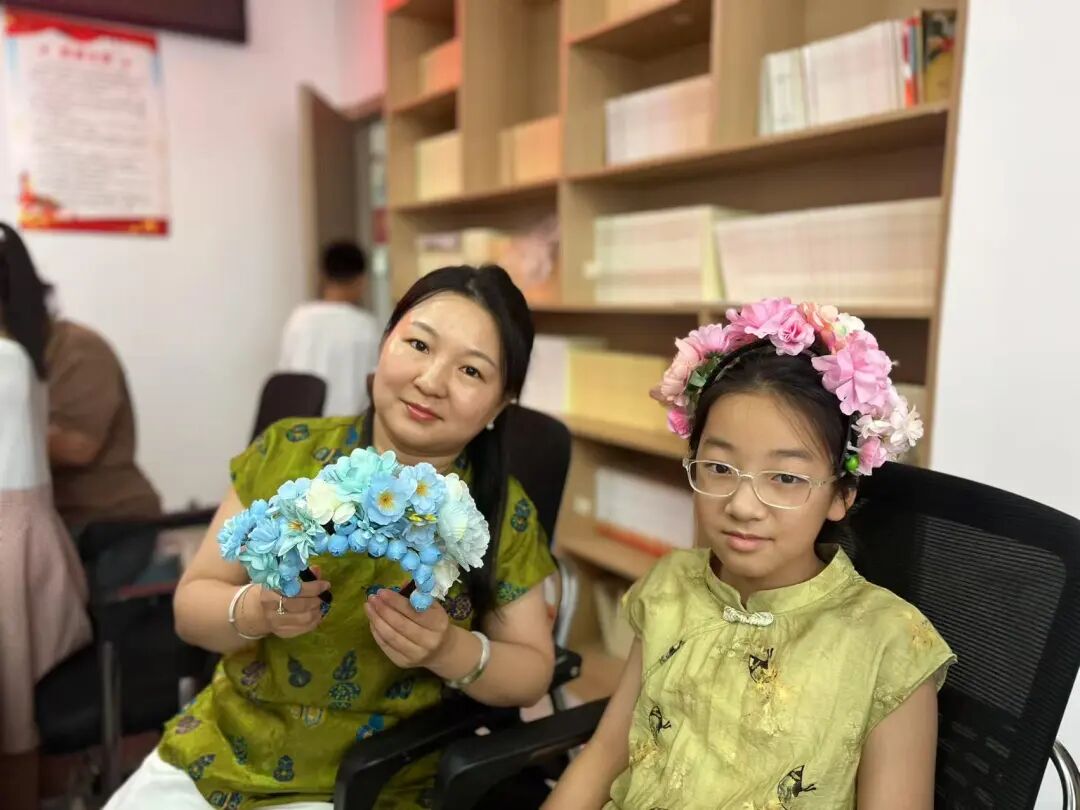 大家纷纷拿起自己的作品拍照留念,并互相展示、分享制作过程中的心得与喜悦。“今天和孩子一起参加这个活动,不仅学到了簪花制作的技艺,更感受到了传统文化的魅力,这种亲子互动的形式也让我们之间的关系更加亲密。”一位家长高兴地说道。