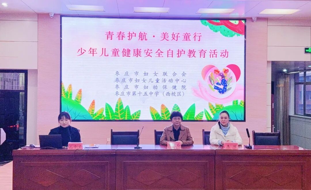 为全面落实立德树人根本任务,促进青少年身心健康发展,近日,枣庄市妇联、市妇女儿童活动中心联合市妇幼保健院,在枣庄市第十五中学西校区共同开展“青春护航 美好童行”少年儿童健康安全自护教育活动。本次活动聚焦女生青春期保健,为七年级女生带来了一场内容丰富、贴近实际的健康教育讲座。通过专业讲解和互动交流,引导她们科学应对成长变化,增强安全意识和健康自护能力,树立尊重生命、珍爱生命的价值观念。此次活动是落实全国“双有”主题教育活动要求的具体实践,有效提升了少年儿童的安全自护意识与能力,为她们青春的旅程扣好了第一粒“安全扣”。