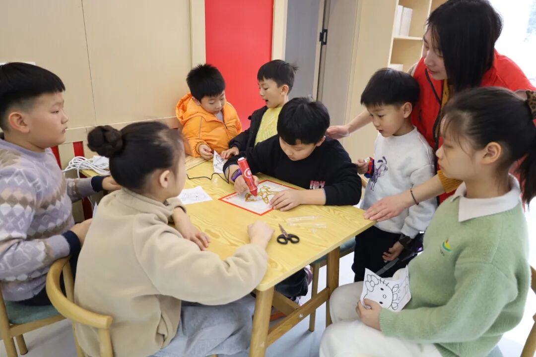 非遗体验区是孩子们的欢乐天地,专为社区儿童设置的糖画、拓印体验趣味十足。孩子们手持糖画电笔,在操作板上勾勒出龙、兔、花朵等各式各样的可爱造型,香甜的糖丝凝结成创意满满的糖画作品;拓印体验则让孩子们在动手操作中感受传统技艺的乐趣,只见他们认真涂抹、按压,一张张带着墨香的拓印作品新鲜出炉,在动手实践中感受传统文化的魅力,让非遗文化在童心深处生根发芽。