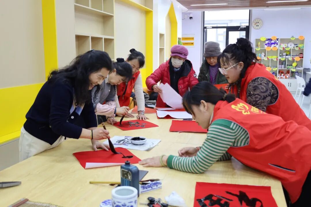 翰墨送福区,社区书法爱好者挥毫泼墨,现场书写春联与“福”字。笔走龙蛇间,一幅幅饱含祝福的作品跃然纸上。“天增岁月人增寿,春满乾坤福满门”“一帆风顺年年好,万事如意步步高”……居民们手捧春联,喜笑颜开,将新春的第一份祝福带回家,让墨香与福气满溢社区的每个角落。