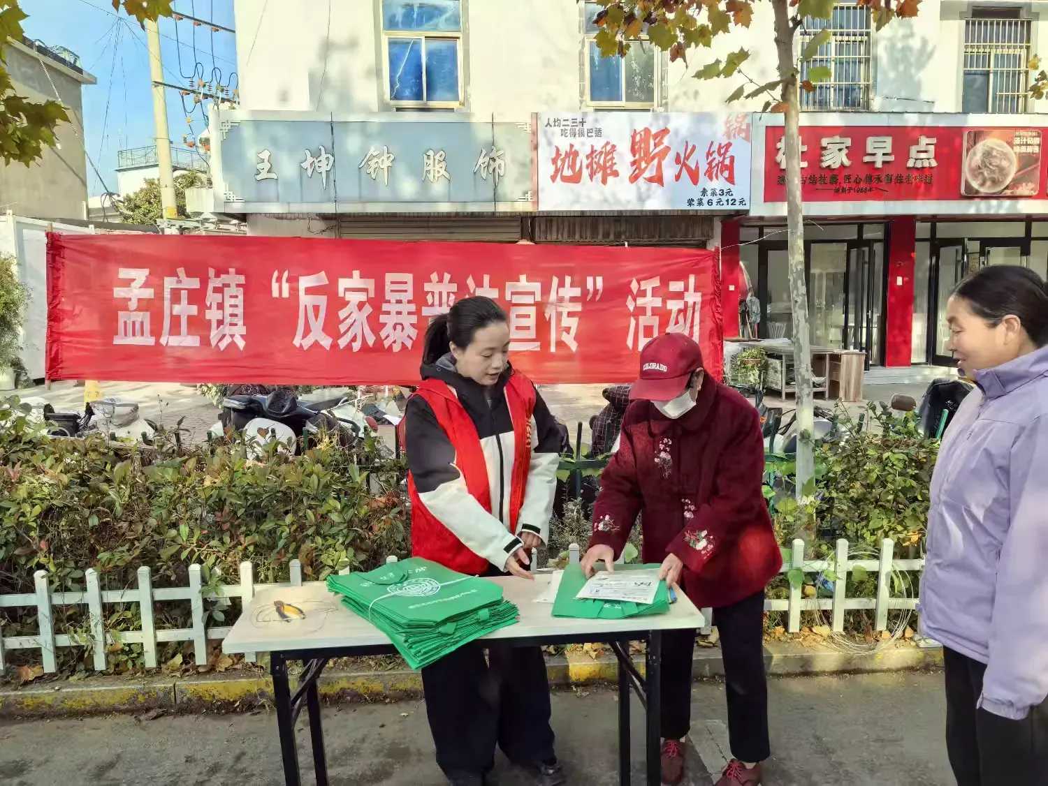 孟庄镇妇联在镇驻地沿街路开展反家暴宣传活动。活动通过发放宣传品的形式,向居民普及反家暴相关知识,提升大家对家庭暴力的认知和防范意识。