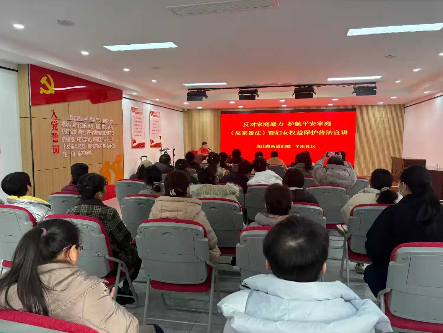 11月20日,龙山路街道妇联联合辛庄社区开展 “反对家庭暴力 护航平安家庭” 专题普法宣讲活动,将《反家庭暴力法》及妇女权益保护知识送到群众 “家门口”,30余名居民现场参与学习。