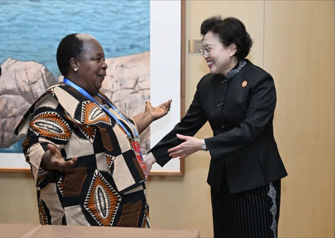 10月13日,国务院妇女儿童工作委员会副主任,全国妇联副主席、书记处第一书记黄晓薇与出席全球妇女峰会的联合国常务副秘书长阿明娜,南非总统府妇女、青年及残障部长奇昆加,中俄友好、和平与发展委员会妇女理事会俄方主席、俄审计署审计委员奥尔洛娃,俄妇女联盟主席西特尔,第四次世界妇女大会秘书长、坦桑尼亚著名妇女活动家蒙盖拉等亲切交流。