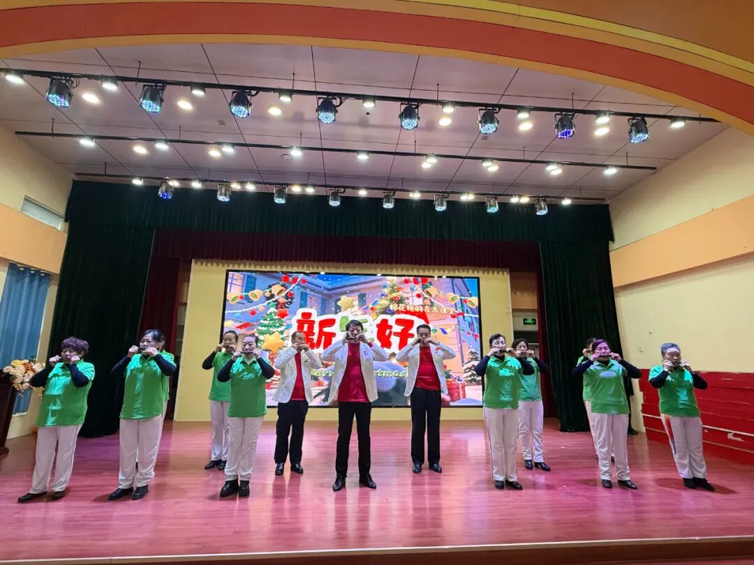 口琴演奏节目紧随其后,为现场带来了清新悠扬的听觉盛宴。口琴联奏《新年好+雪绒花+欢乐颂+苏姗娜》 旋律明快,熟悉的经典曲目串联成章,清脆悦耳的琴声在大厅里流淌,勾起在场观众的温暖回忆;四重奏《欢庆舞曲》 节奏热烈欢快,演奏者配合默契,和声灵动交织,奏响了新春乐章;《友谊地久天长》 则更显醇厚悠扬,六重和声层次分明,传递出真挚绵长的情谊。