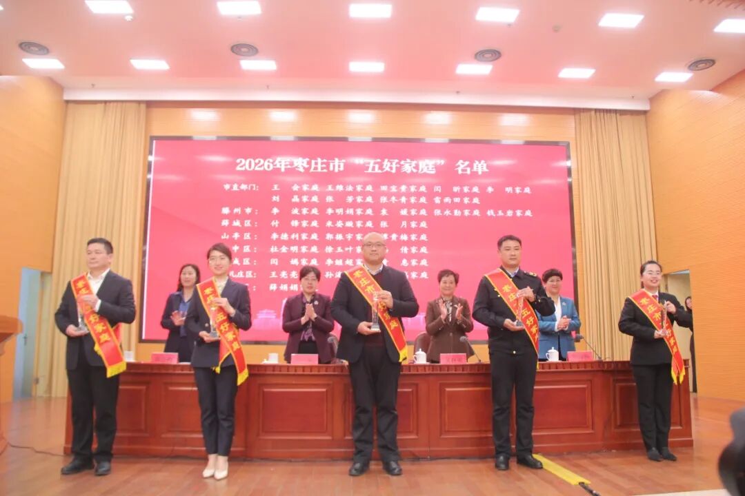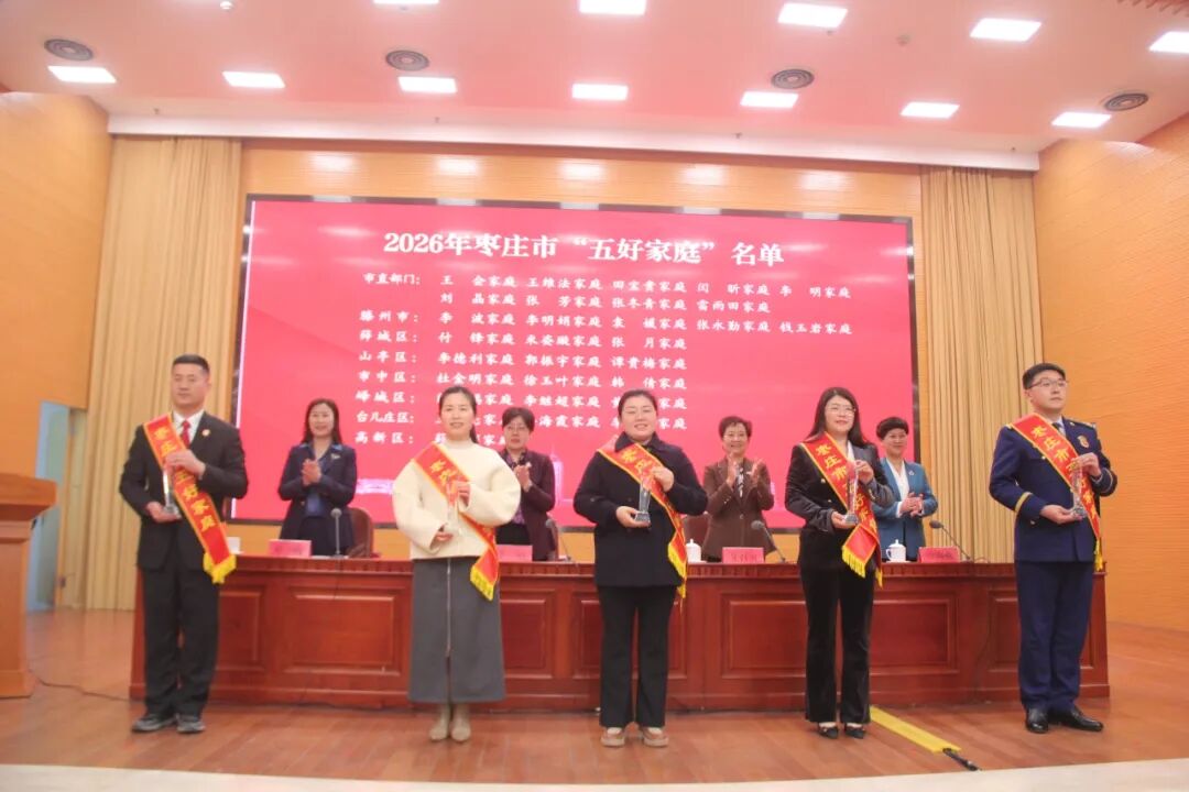 徐春梅宣读了全国妇联表彰的先进个人和集体名单及2026年枣庄市“五好家庭”名单。