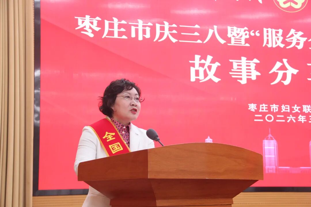 李妍在讲话中向全市广大妇女同胞致以节日的问候,向受到表彰的集体、个人和家庭代表表示热烈祝贺。她指出,过去一年,全市各级妇联组织围绕中心、服务大局,推动妇女事业取得新进展。广大妇女以“巾帼不让须眉”的担当,积极投身“强工兴产、转型发展”主战场,在各条战线实干争先,书写了无愧于时代的奋斗篇章。她强调,2026年是“十五五”开局之年,也是市委确定的“服务企业年”。全市广大妇女要坚定巾帼向党之心,把准服务发展正确方向;要彰显巾帼助企之为,扛起服务发展时代担当;要弘扬巾帼文明之风,营造服务发展良好环境;要锤炼巾帼过硬之能,夯实服务发展能力根基。各级妇联要持续深化改革,加强基层组织、阵地与队伍建设,发扬抓实办成的作风,不断提升引领力、服务力、组织力,真正把妇联建设成为妇女群众信得过、靠得住、离不开的温暖娘家。各级各部门要一如既往重视支持妇女事业,维护妇女合法权益,强化政策资源保障,让尊重妇女、关爱妇女、支持妇女在枣庄蔚然成风。